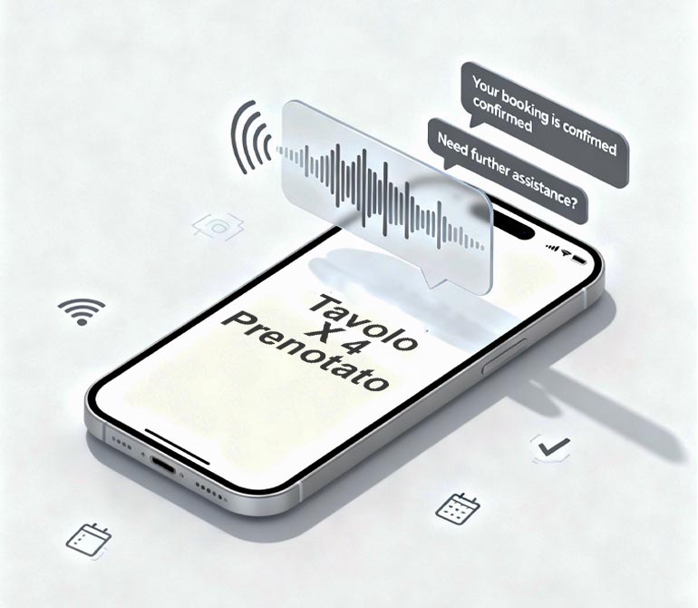 Consente ai clienti di prenotare un tavolo semplicemente parlando con un assistente AI naturale e intuitivo. Il sistema riconosce voce, gestisce orari, numero di persone e accoppiamenti tra tavoli, ottimizzando automaticamente la disposizione. Un backend avanzato permette ai ristoratori di configurare sale, turni, fasce orarie, tavoli e combinazioni, monitorare disponibilità e ricevere conferme in tempo reale. Tutto avviene senza intervento umano, garantendo efficienza e precisione assoluta.